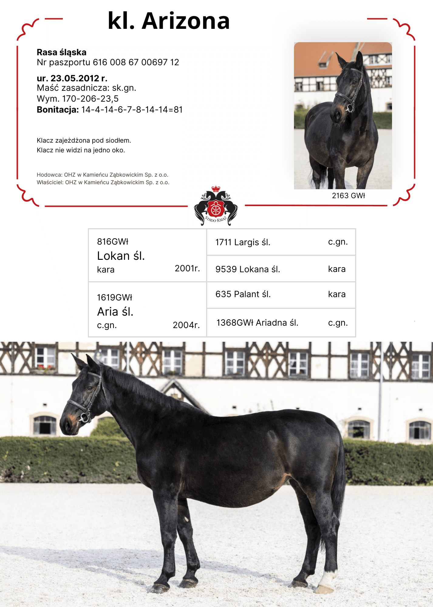 1. kl. 2163GWŁ ARIZONA sk.gn. 2012r. (Lokan-Aria po Palant)