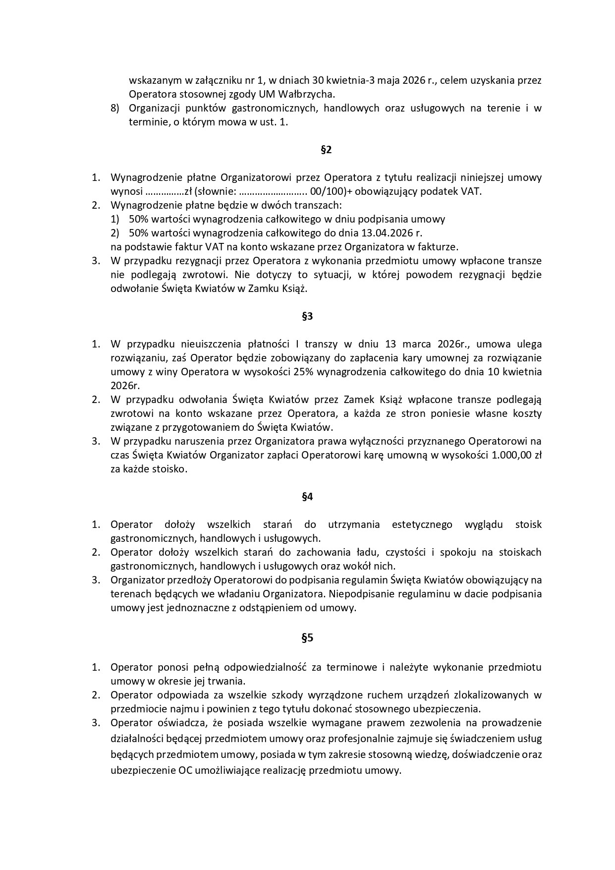 W wyniku konkursu na operatora handlowo usługowego na obsługę " Majówki Książ 2026 " spośród prawidłowo nadesłanych ofert została wyłoniona firma: